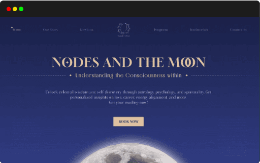 Nodes and the Moon is a spiritual guidance platform offering personalized sessions. The landing page was designed to capture its mystical essence while staying clean and intuitive. The focus was on clarity, trust, and smooth user flow.